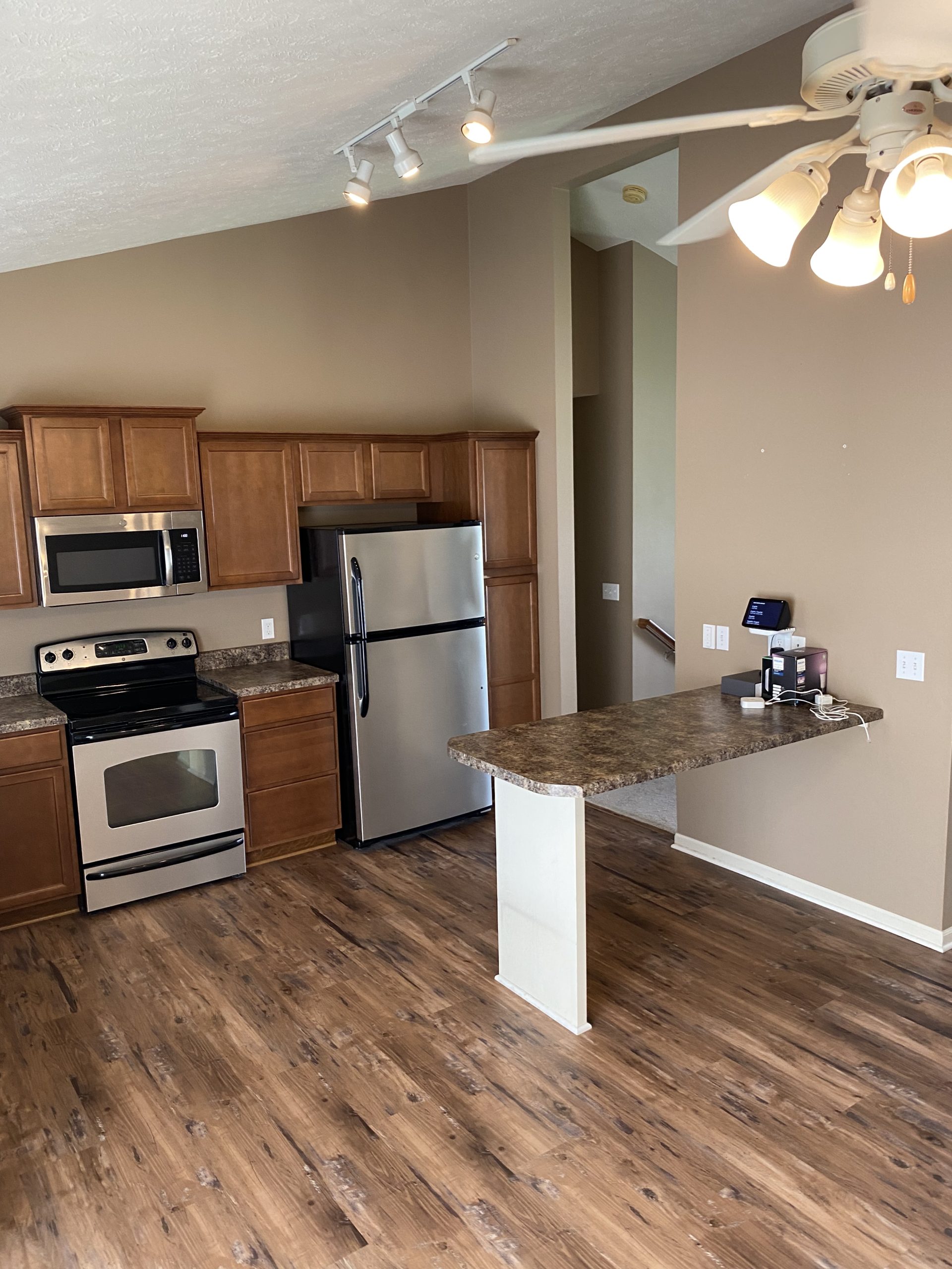 Nice 3 bedroom, 2 bathroom split entry with a 2 car garage. Newer carpet in the great room and LVP flooring in the entry and kitchen. Kitchen has stainless steel appliances and cherry stained cabinets. Vaulted ceiling in the great room and kitchen and primary bedroom. Primary bedroom has walk in closet and a 3/4 bath with double sinks. Finished basement with cozy fireplace and family room. Composite deck with fenced in PVC privacy fence. Expanded driveway and oversized garage. Owner may consider a small pet on a case by case basis. Please call to schedule a tour. Available March 30th 2026. Please call Action Management at 402-339-1969 to schedule a tour.